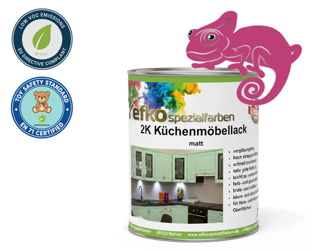 Wähle dein Wunsch-Finish: Edel-Matt oder eleganter Seidenglanz! Jetzt mit neuer verbesserter Rezeptur! Warum der Efko 2K Küchenmöbellack in RAL 4010 überzeugt