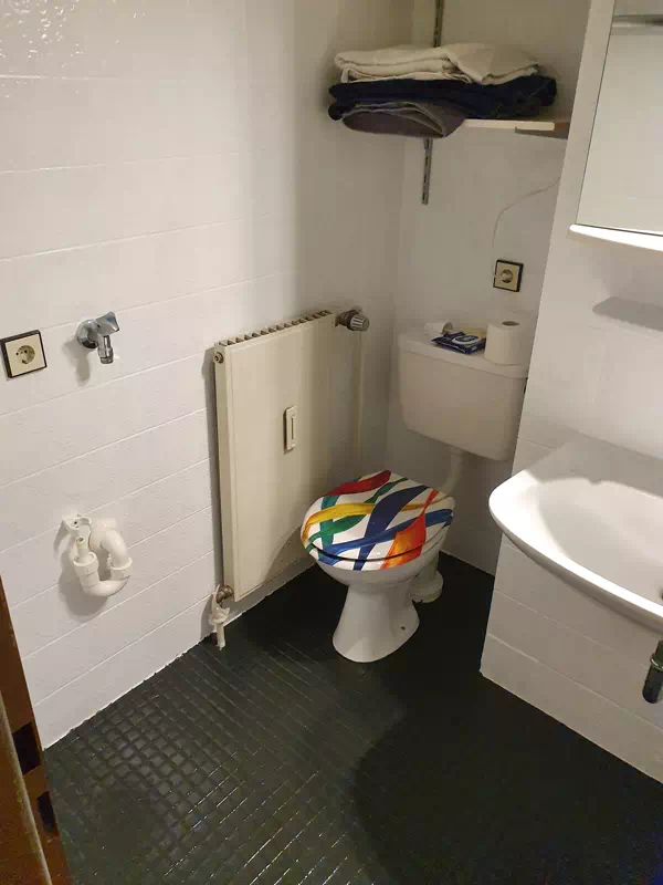 Der Endanstrich der Badfliesen erfolgte mit der EFKO Fliesenfarbe strahlend weiß matt. Dabei entschied sich Kund*in M. für das Fliesenlack-Set Super, welches außer dem Fliesenlack, der Vorbehandlung und der Grundierung auch ein Profi Lackierwalzenset für Fliesenfarbe enthält.