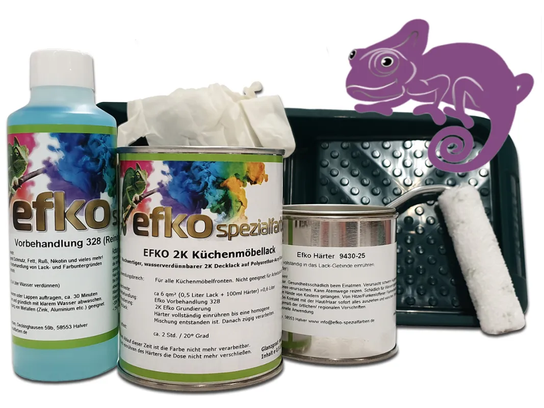 Der EFKO 2 Komponenten Küchenmöbellack in signalviolett zeichnet sich durch milden Geruch bei der Verarbeitung, konsequente An- und Durchtrocknung sowie Füllkraft aus. Er dient dem Anstrich von allen Küchenoberflächen - für Komplettanstriche oder Renovierungsanstriche (nicht für den Einsatz auf Küchenarbeitsplatten geeignet).