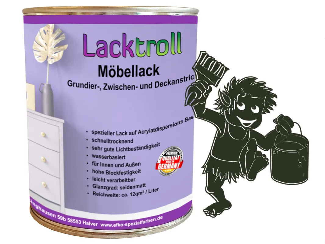 Hinweis:Unser Lacktroll Möbellack 3in1 ist vielen gängigen Farbkarten abtönbar. Getönte Waren werden speziell für dich angefertigt und sind daher vom Widerrufsrecht ausgeschlossen.