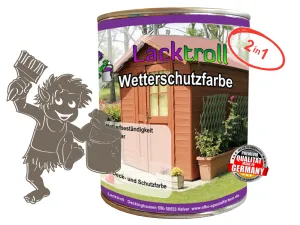 Unsere hochwertige Lacktroll Wetterschutzfarbe 2in1 ist eine Speziallackfarbe für Holz und wetterfeste Holzwerkstoffe mit hoher Beanspruchung im Außenbereich, außerdem für Kunststoffe, Aluminium, verzinktes Blech u.m. mit entsprechender Vorbehandlung.