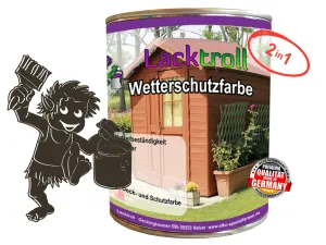 Unsere hochwertige Lacktroll Wetterschutzfarbe 2in1 ist eine Speziallackfarbe für Holz und wetterfeste Holzwerkstoffe mit hoher Beanspruchung im Außenbereich, außerdem für Kunststoffe, Aluminium, verzinktes Blech u.m. mit entsprechender Vorbehandlung.