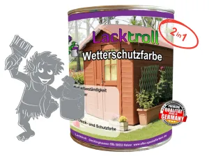 Unsere hochwertige Lacktroll Wetterschutzfarbe 2in1 ist eine Speziallackfarbe für Holz und wetterfeste Holzwerkstoffe mit hoher Beanspruchung im Außenbereich, außerdem für Kunststoffe, Aluminium, verzinktes Blech u.m. mit entsprechender Vorbehandlung.