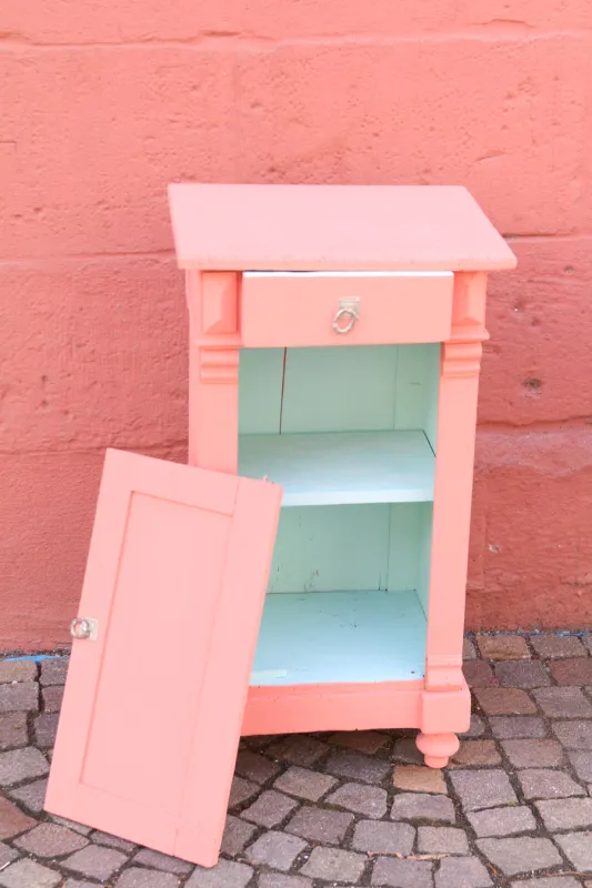 Möbelstück aus einem Workshop - Farbkombination mit Kreidefarbe yellowchair No.192 korallenrot